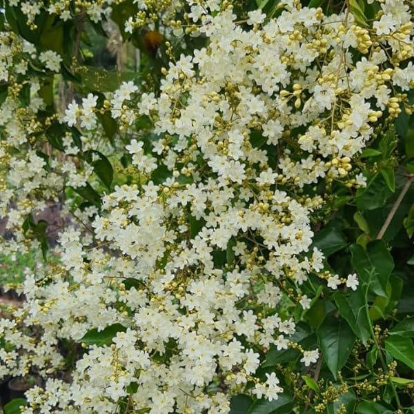 The Indian Jasmine Plant is a fragrant flowering plant known for its small, white, star-shaped blossoms and soothing aroma.